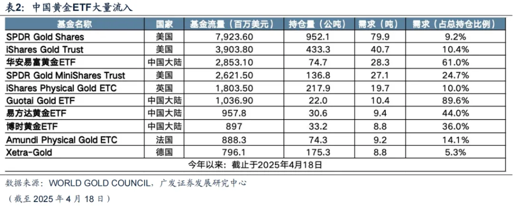 黄金ETF增持:2025年以来,ETF资金成为助推金价持续上行的重要力量。